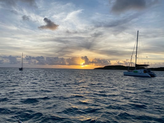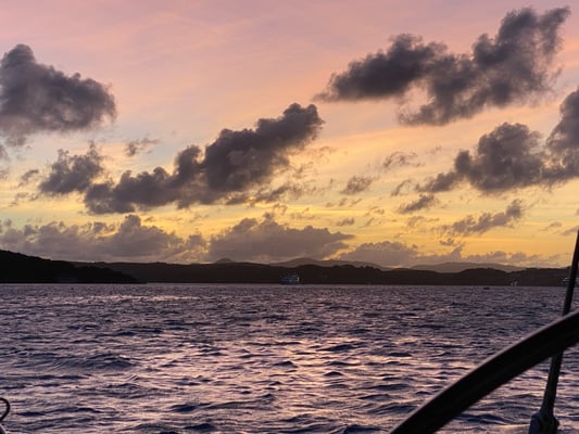 ...dabei haben wir alles mitgenommen: Flaute, Schwachwind, Passatsegeln, 8bf (stürmischer Wind), 4,5m Wellen von der Seite, traumhafte Sonnenaufgang- und -untergänge, tolle Sternenhimmel, Regenbögen, Blau in den unterschiedlichsten Schattierungen, Delfine, 1 Wal, Schildkröten und ganz viele fliegende Fische. Wir sind sehr glücklich, alle Strapazen erfolgreich bewältigt zu haben und angekommen zu sein.