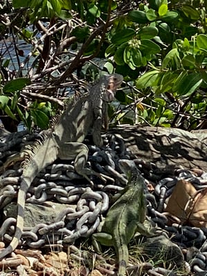 St. Martin: die Woche der Männer war geprägt von Großeinkäufen (der Carrefour hier ist super!), kleineren Reparaturen, auffüllen der Gasflaschen, Motor Wartung und die Jungs haben es geliebt in den Mast zu klettern (natürlich mit Sicherung!). Begeistert wurden die Leguane beobachtet.