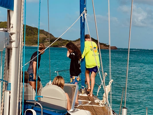 verbringen noch einen wunderbaren Sonntag mit anderen Seglerfamilien auf dem Sandhügel im Meer (Insel Mopion). Wir gehen Schnorcheln (sehen einen kleinen Ammenhai), die Erwachsenen unterhalten