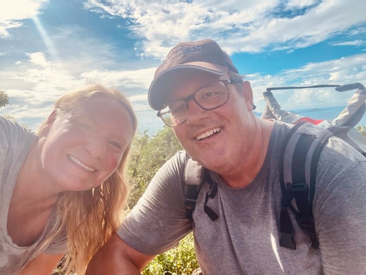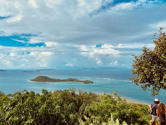 Sobald es wieder etwas aufklart brauchen wir nach den ganzen Regentagen Bewegung: gemeinsam mit zwei weiteren Kinderbooten wandern wir auf den höchsten Hügel der Insel.