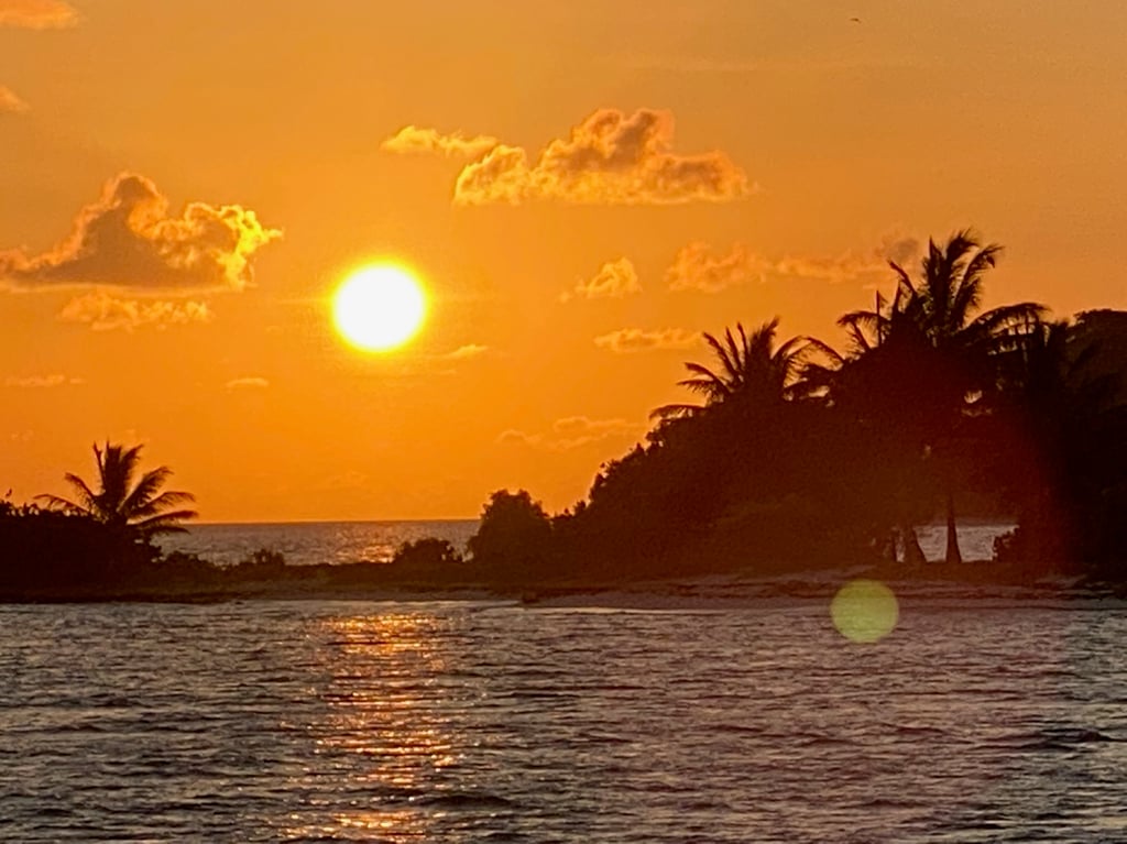 geniessen es hier. Toller Strand. Palmen, türkisfarbenes Wasser, kein Rollen (alles bleibt an seinem Platz stehen und man muss nicht jeden Handgriff überlegen).