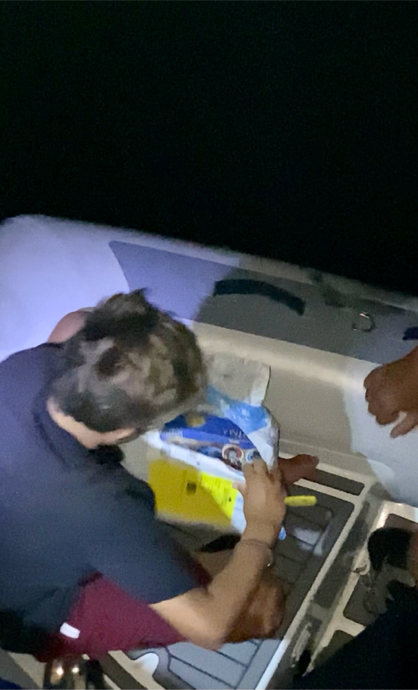Natürlich haben wir sofort ausgepackt (im Dinghy wegen Kakerlakengefahr). Unboxing bei Nacht im Dinghy. Sehr aufregend. Liam hat sich riesig gefreut und natürlich gleich ans Aufbauen gemacht. Mit bei den Paketen war auch unser neues Wasserspielzeug. Einer Wassermatte zum drauf spielen, toben, chillen… Kommt bei den Kindern richtig gut an.