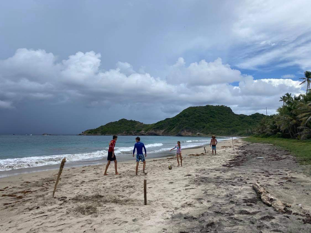 Nachdem wir uns am Freitag letzte Woche noch einmal ausreichend verproviantiert haben, fahren wir mit unseren kanadischen Feunden gen Süden auf eine Insel vor Grenada. Wir waren zwar nicht die einzigen mit der Idee, vor dem Lockdown-Wochenende hierher zu fliehen. Als wir ankamen, waren wir die 4. Yacht. Am Ende waren es 14. Es ist aber genug Platz, so dass wir uns nicht auf der Pelle hocken.