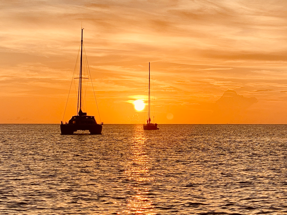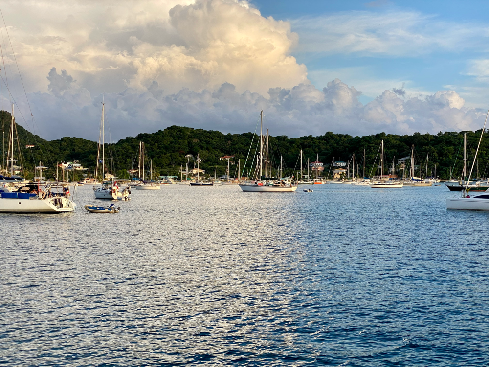 Leider mussten wir uns von den Kanadiern am Sonntag verabschieden. Sie müssen wegen Reparaturen weiter nach Grenada fahren, Wir machen uns wieder auf den Weg zurück nach Carriacou. Leider „saugt“ der Hurrikan Sam den ganzen Wind aus der Süd-Karibik auf den Atlantik. Wir müssen leider motoren.