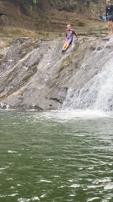 Es gibt hier viel zu sehen: viele unterschiedliche Wasserfälle, teilweise mit Steinrutschen ins Becken rein, einen Kratersee und Affen. Die Affen haben es uns besonders angetan. Lustig, wie sie