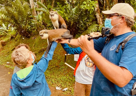 auf uns herumklettern, um an Bananenstücke zu kommen.