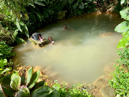 Am Sonntag fahren wir mitten durch den Urwald und wandern im Anschluss einen kleinen Pfad entlang zu heißen Sulfur Quellen. Es tut gut im heißen Wasser zu entspannen. 😍