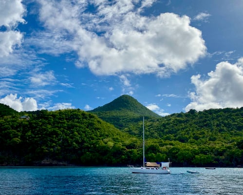 Wir fahren an Dominica vorbei - wunderbare Naturinsel. Und wieder einmal mit etwas flüssigem Sonnenschein 🤣 - aber auch tatsächlichem Sonnenschein 😁. Schade, dass immer noch eine einwöchige Quarantäne gilt… Sonst wären wir gerne nochmal für eine