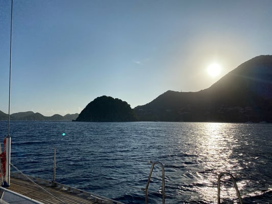 Im Halbdunkeln erreichen wir die vorgelagerte Inselgruppe Iles-de-Saintes von Guadalupe (ebenfalls Frankreich). Es wird gesagt, dass diese sehr bretonisch geprägt sein soll… Wir sind