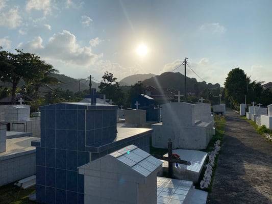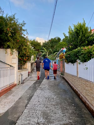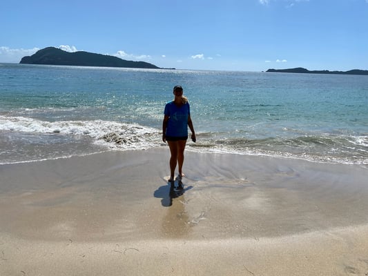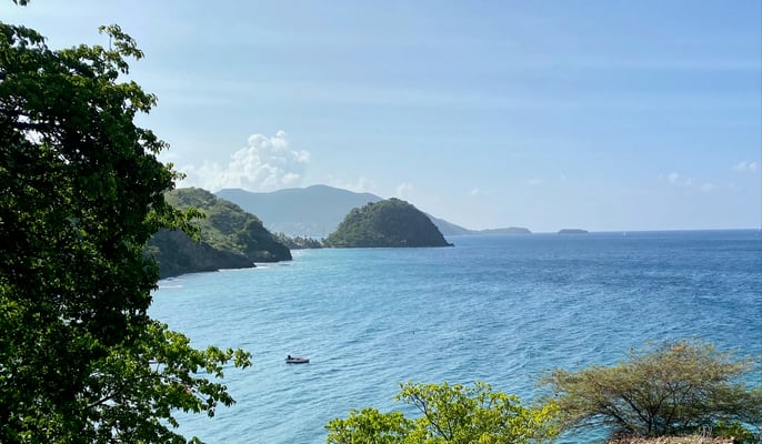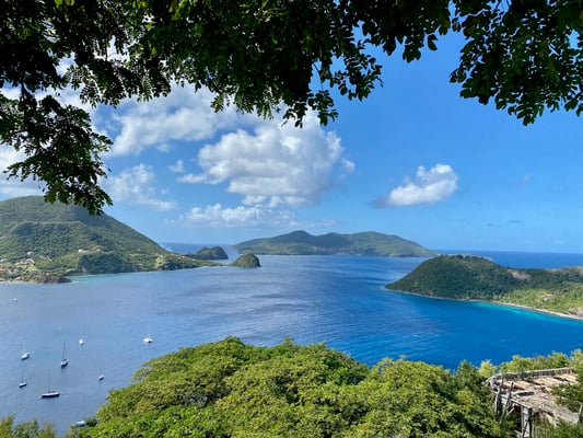 Jeden Nachmittag erkunden wir Terre-de-haut von Iles de Saintes/ Guadeloupe. Wir gehen wandern und erkunden diese mit einem kleinen Elektromobil (Golfcart). Diese kann man an jeder Ecke mieten. Die Insel ist hügelig und bewaldet. Es gibt genau eine Straße, die von einer Ecke der Insel zur anderen führt.