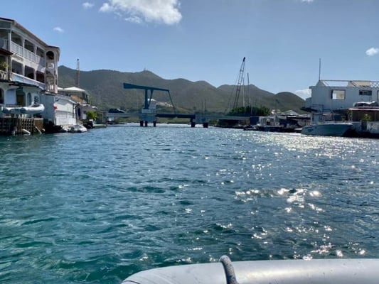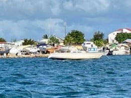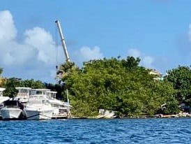 Die Lagune ist bis auf eine ausgebaggerte Fahrrinne und einige wenige Ankergebiete sehr flach. Man sieht überall Schiffswracks in Teilen aus dem Wasser ragen. Die Zerstörung stammt noch vom Hurrikan Irma. Sehr beängstigend. 😮