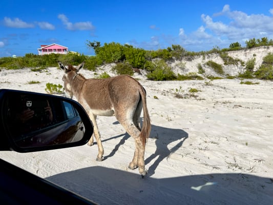 Neben den Flamingos sehen wir freilaufende Esel und Stiere.
