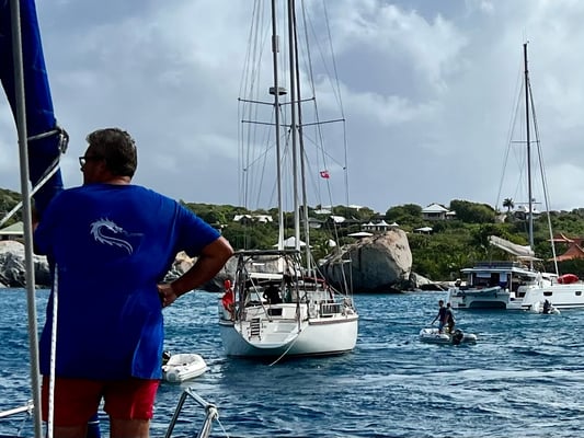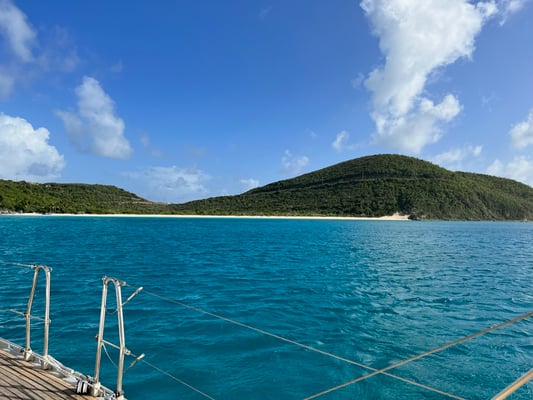 Herrlicher Segeltag dann am Dienstag mit rund 15 Knoten Wind aus Halbwind und sieben Knoten Speed 😁👍. Ja, wir verlassen Anegada wieder - haben alles gesehen, so richtig gut finden wir den Ankerplatz nicht und vor allem haben wir nur mäßigen Mobilfunk-Empfang. Für Emails reicht es, da aber viele Telefonate anstehen, braucht Daniela eine bessere Verbindung.