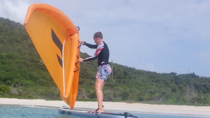 Wir spielen Ball, die Großen machen etwas Wing Surfing (leider zu wenig Wind und wenn dann nur in Böen), Liam und Daniela gehen schnorcheln.