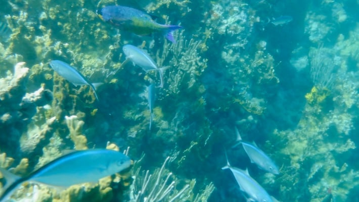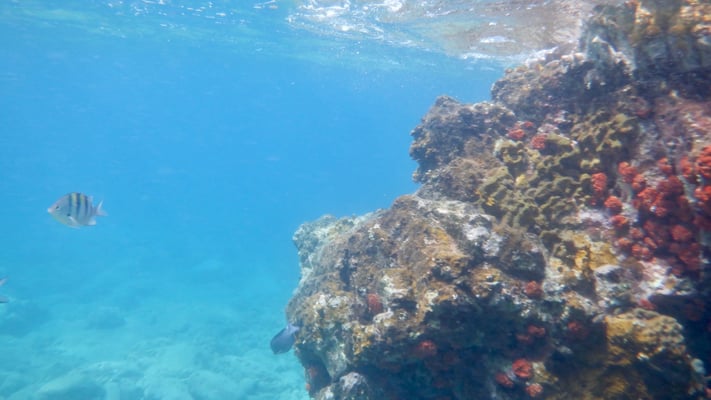 Da es sich nur um Tagesmoorings handelt, fahren wir spät nachmittags noch weiter zur Norman Island - einer kleinen felsigen Insel mit schönen Schnorchel-Spots. Am Samstag erkunden wir "the Indians" - Felsformationen im Meer und freuen uns über die vielen bunten Fische und einige Korallen (viele sind leider tot...).