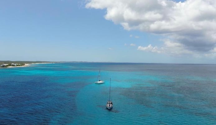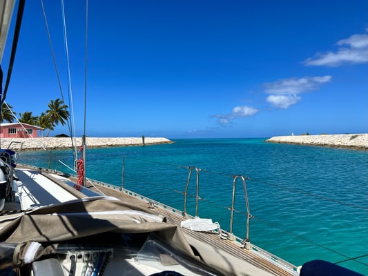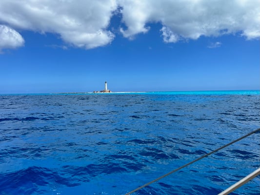 Freitags geht der Wind runter und wir fahren wieder 40 Seemeilen/ 7 Stunden weiter nach Norden in den Nordwesten von Long Island/ Calabash bay. Das Wetter ist ideal für unser Leichtwindsegel. Morgens stehen wir früh auf, um dieses zu riggen. Seit unserer Überfahrt über den Atlantik haben wir es nicht mehr verwendet - wir hatten immer richtig viel Wind. Allerdings hatten wir damals damit ja einige Probleme auf dem Atlantik… manche werden sich hieran erinnern… Noch sind wir aber optimistisch und starten unter Motor.