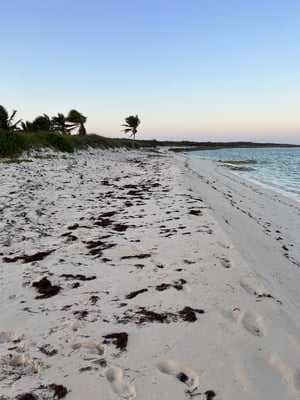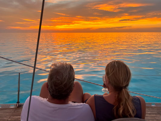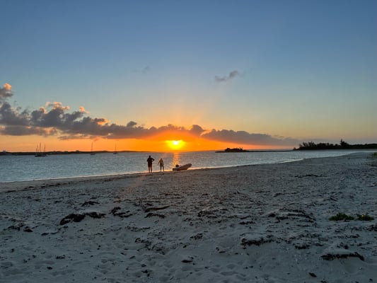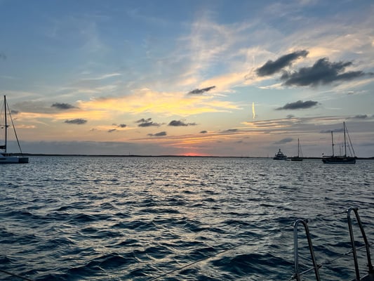 Abends erkunden wir das kleine Eiland und genießen den Sonnenuntergang bei einem Sundowner mit unseren Freunden der SY Wandering Star.