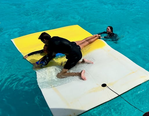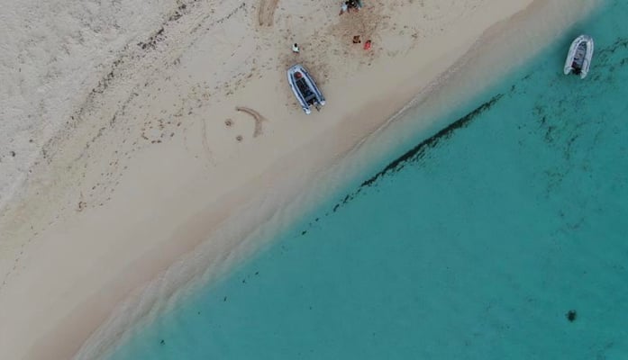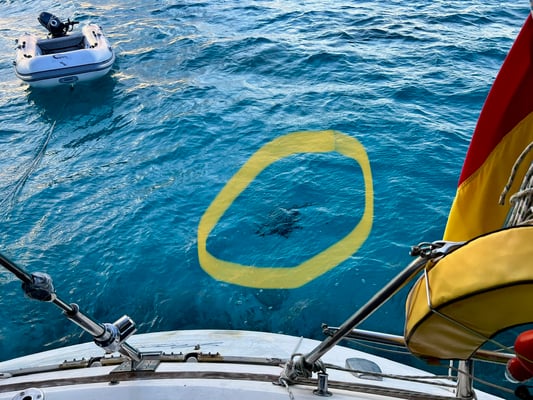 Die ganze Woche bleiben wir in dieser Bucht vor Anker. Neben Homeschooling und ausgiebigem Home-Office (Danielas Videokonferenzen starten teilweise bereits um 5 Uhr morgens 🙈), stehen Arbeiten an unserer LEREVE an: Unser Unterwasserschiff sieht aus wie ein kleines Riff und bremst uns daher beim Fahren um rund einen Knoten. Da wir keine Tauchausrüstung haben, heißt es Luft anhalten, runtertauchen und den Bewuchs des Schiffsrumpfs mit Schwämmen bzw. Metallkratzern zu entfernen. Eine sehr mühsame Angelegenheit, da wir immer nur wenige Minuten unter Wasser bleiben können. Aber wir kommen jeden Tag ein Stückchen weiter - auch wenn wir immer noch nicht fertig sind… Ein großer Barracuda beobachtet uns regelmäßig bei der Arbeit.