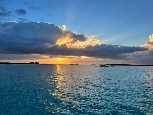 Zunächst fahren wir in die angrenzende Marina zum tanken und dann machen wir uns auf nach Long Island. 40 Seemeilen, rd. 7 Stunden Fahrtzeit. Da der Wind nachlässt leider mit Motor… Abends liegen wir vor Clarence town. Den kleinen Ort im Rücken und vor uns eine unbewohnte kleine Insel sowie Riffe. Gut geschützt und endlich (!!!!) ohne Schwell. Das tut sooo gut 😁👍.