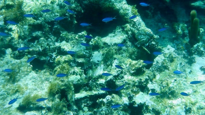 Leider gibt es hier nicht viele Fische… voraussichtlich sind einfach zu viele Haie in der Bucht.