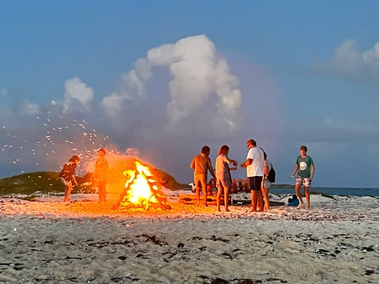 Nach und nach kommen auch die anderen Kinderboote nach Clarence town und wir feiern das Wiedersehen bei einem Lagerfeuer.